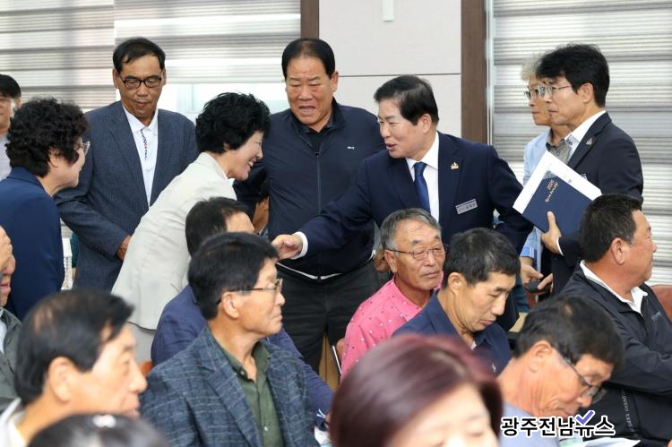 공영민 고흥군수가 지난 10월 16일 도화면사무소에서 열린 이장부녀회장 연석회의에 참석해 인사하며 소통하고 ִ.(=ﱺ)