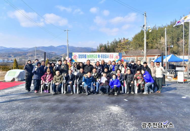 장성읍 잠암마을 주민들이 24일 도로 확포장 공사 준공식을 갖고 자축하 Կ ϰ ִ.(=强)